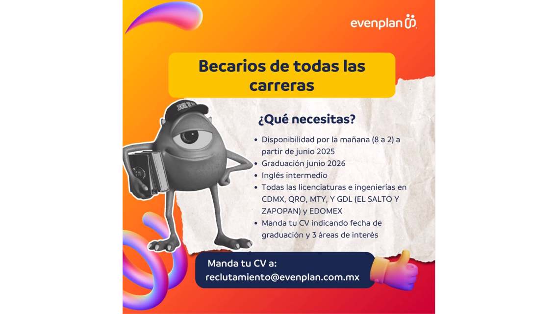 En Evenplan, creemos en el poder de las ideas frescas y las mentes jóvenes. Por eso buscamos a un/a Becario Molex I que quiera aprender, aportar, proponer y crecer en un entorno dinámico.